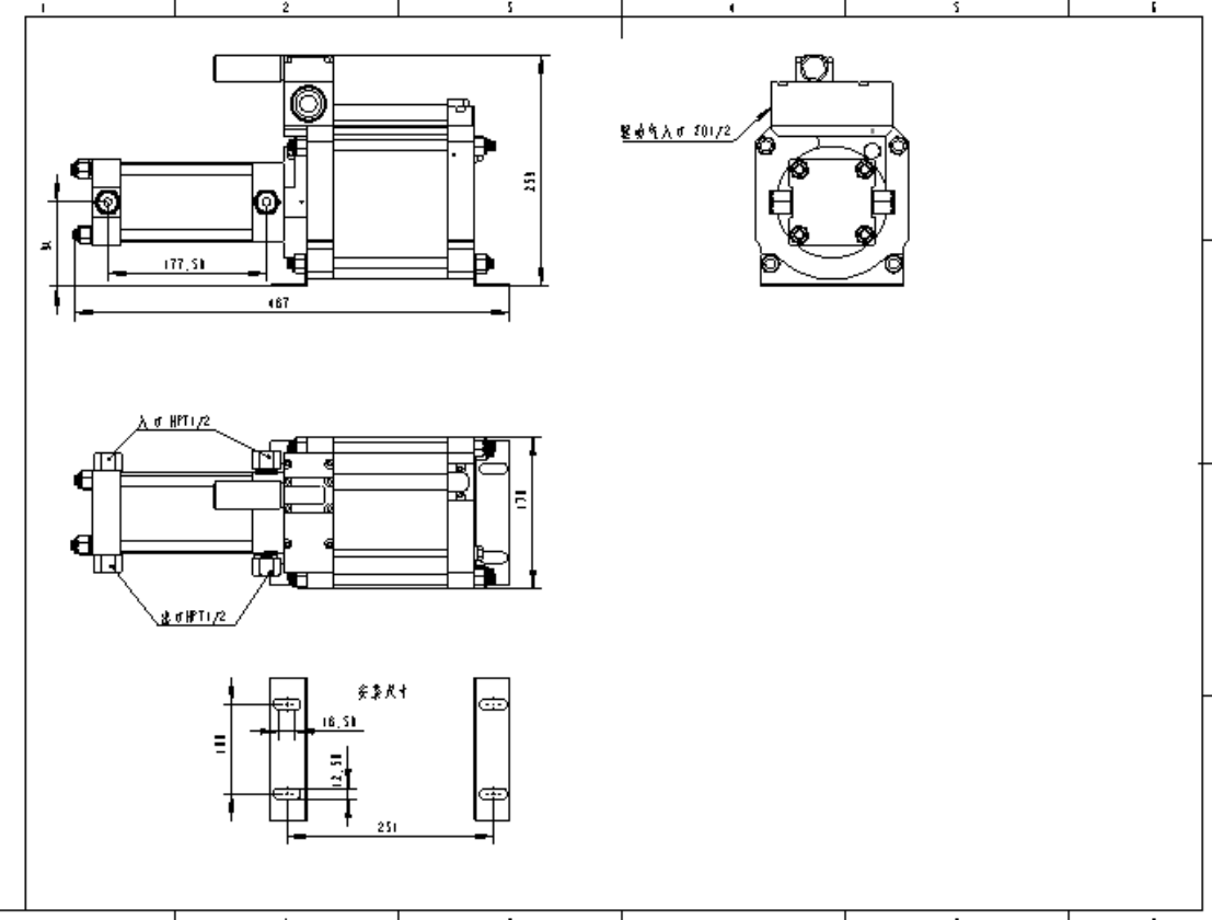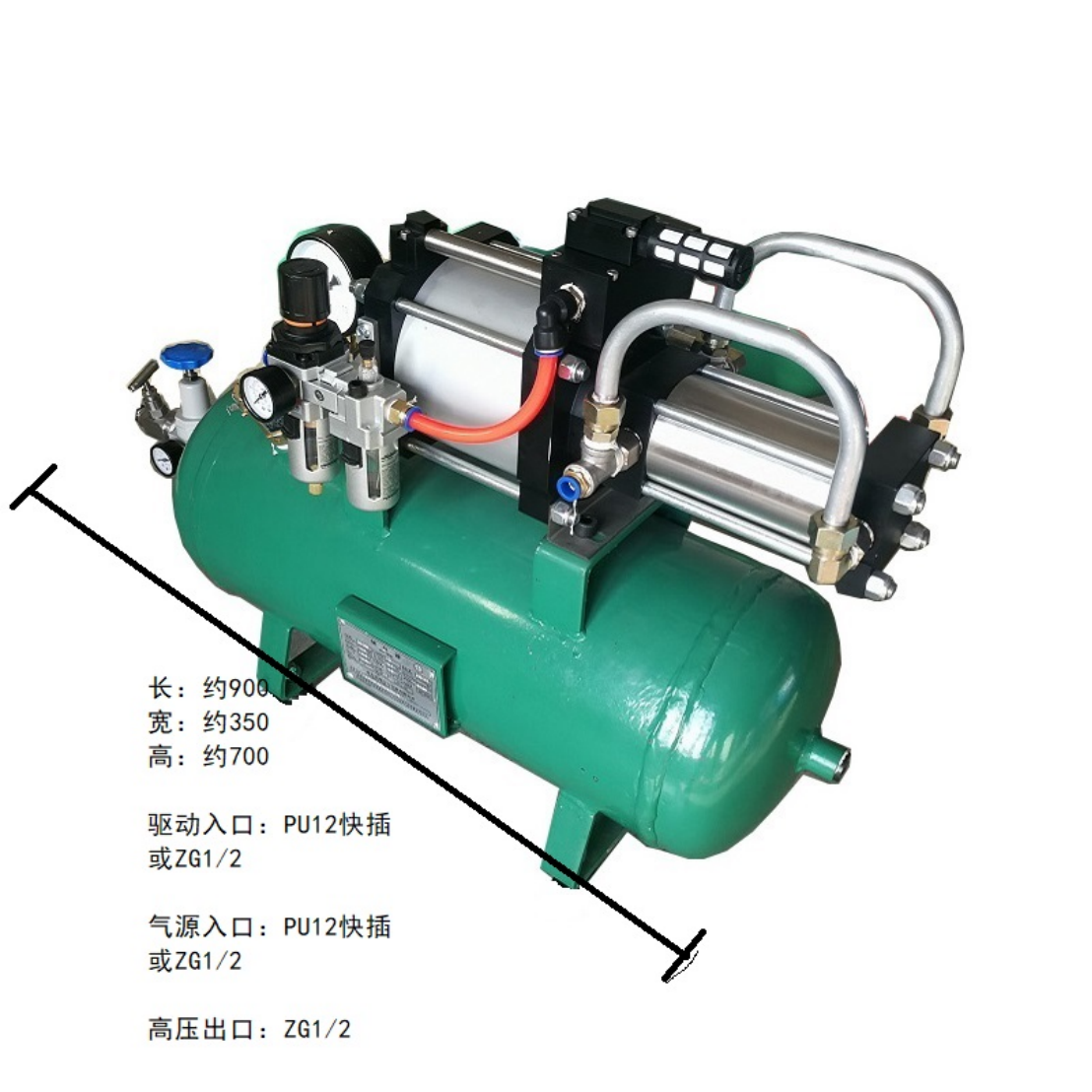 Another Model: A32K-05AThe high-pressure piston diameter is 70mm, the area pressure boost ratio is 1:5, and the outlet pressure is calculated as pB=5pL+pA.